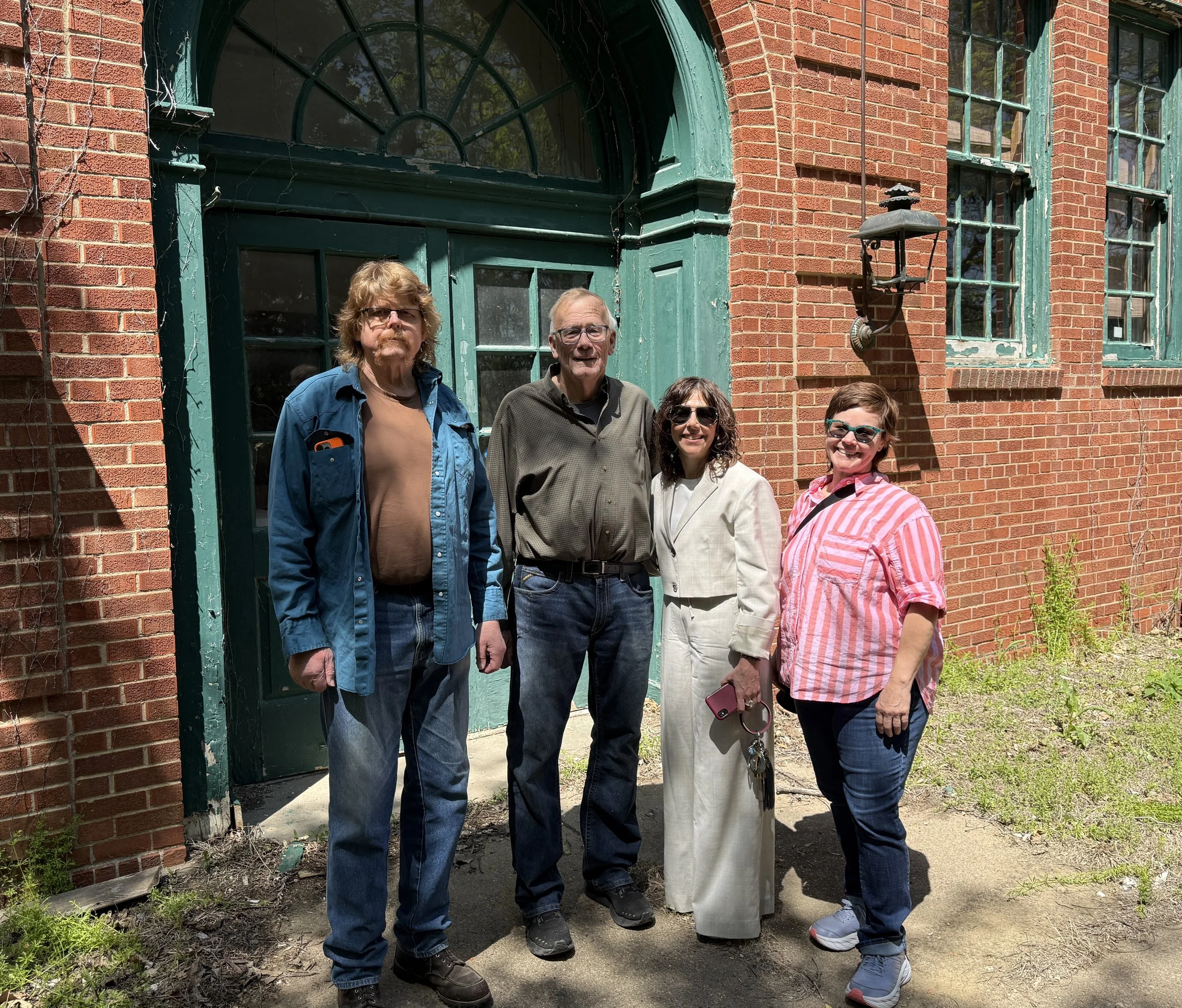 The Brownville Education Center for the Arts and Humanities (BECAH) hosted two visitors from the University of Nebraska at Omaha (UNO) May 9. Pictured left to right are Brownville artist John Lokke, BECAH Board member Dale Dickkut, Amy Morris - director of the School of the Arts at UNO and Rebecca Norris - director of the UNO Art Gallery.
